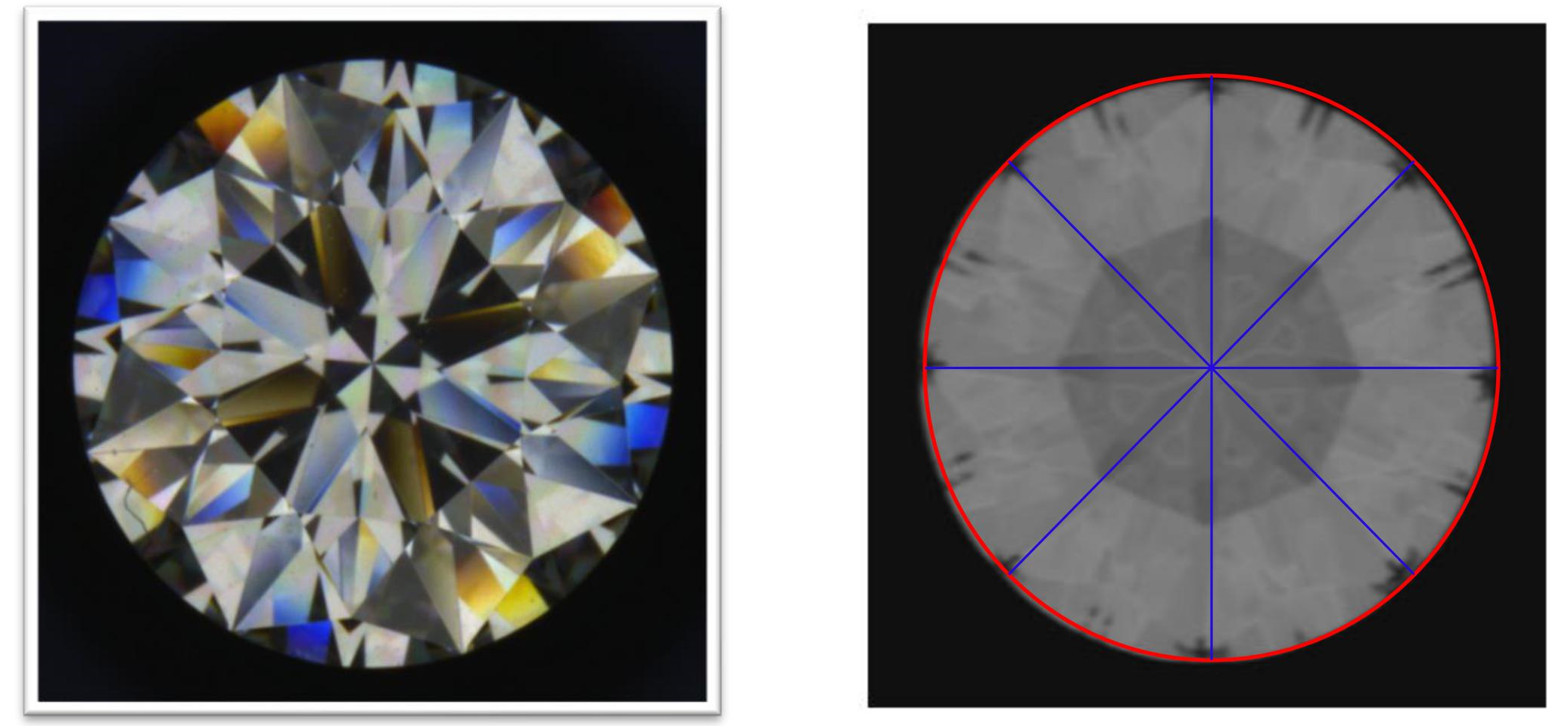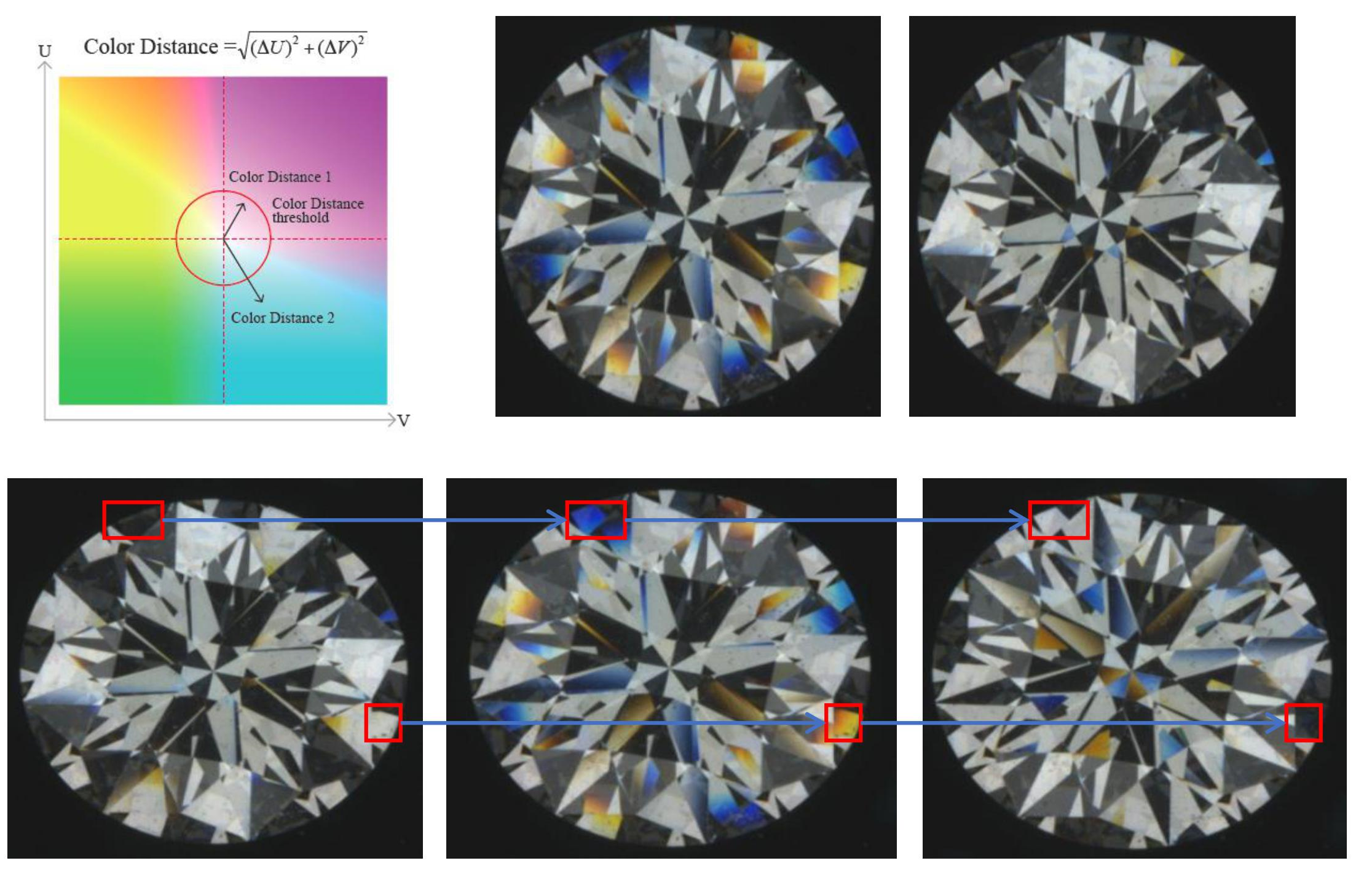 Light distribution in the diamond is calculated using the composed image of all the images.Check the variation among same location in the images every 45 degrees.
